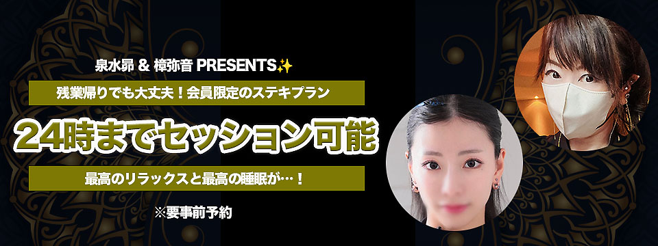 会員さま限定で、泉水昴さんと樟弥音さんが24時まで対応できることになりました。 ※事前のご予約が必要です。 残業で遅くなった日や、セッション終わったら面倒だからそのまま泊まりたい方、早朝に移動しなければならない方、最近眠りが浅い方…etc 理由は... イベント