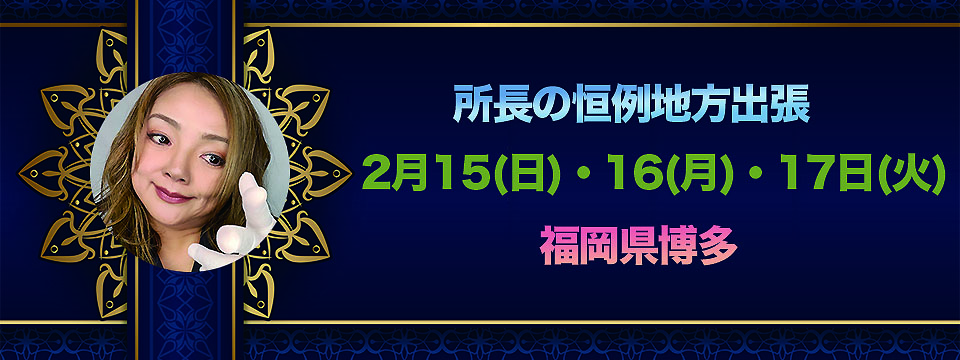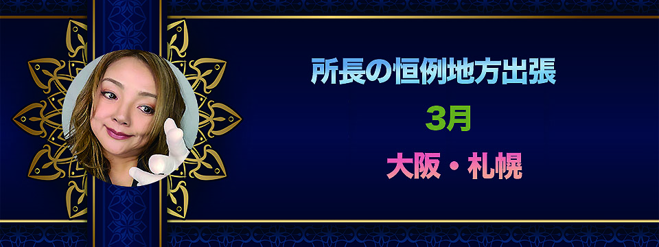 所長の不定期出張が以下のように決定いたしました。ご希望の方はぜひご検討くださいませ。また、お申し込みは先着順となりますが、ご新規の方は全額前納となり、ご入金確認後にご予約確定となりますことをご了承くださいませ。 大阪🔸日時:2026年3月8日(... イベント