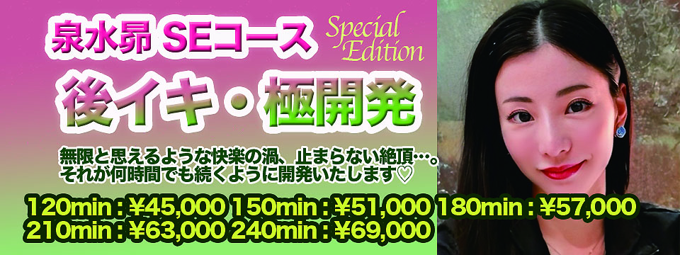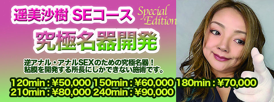 アナル開発の専門家である以上、その世界でのエキスパートであるべきだとTABOUは思うのです。それぞれのキャストが、『この分野を極めたい』というこだわりがあります。それをSE(スペシャルエディション)として完成させました。スタンダードでもイベントでもない新しいコースで、他のキャストには真似ができない領域へ連れて行ってくれるでしょう…。